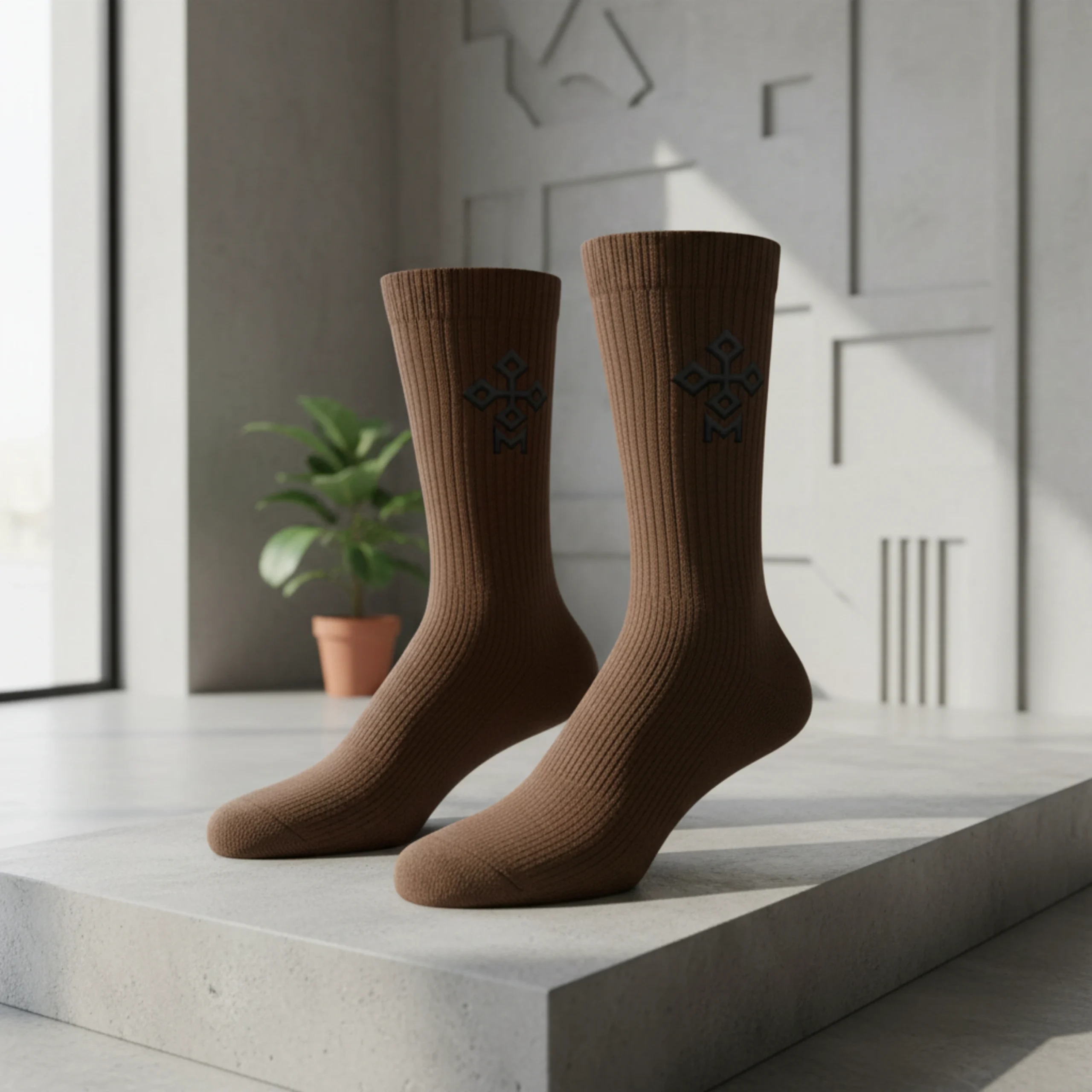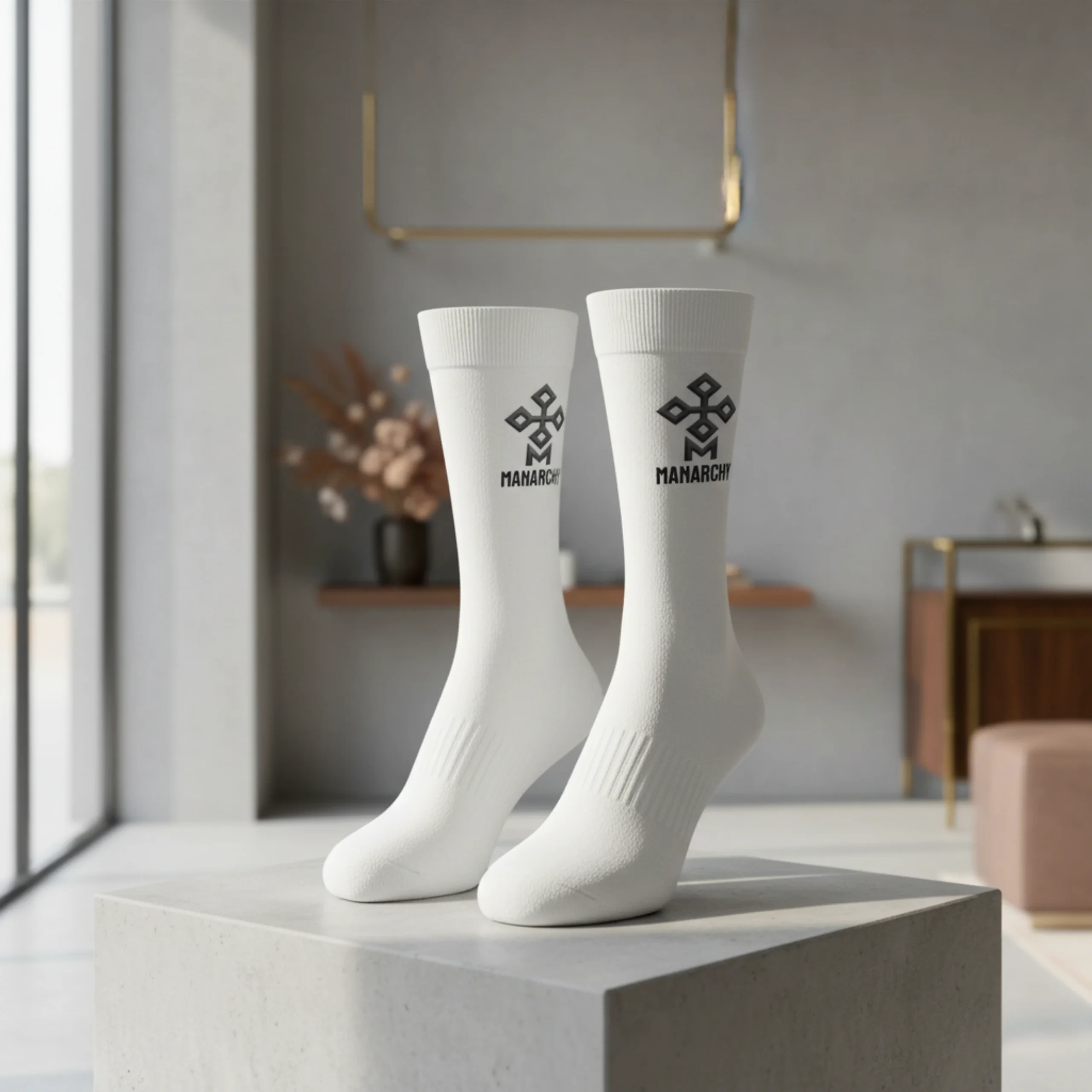 Step into full-body coordination with the Manarchy Legacy Armor Long Socks. These premium ribbed crew socks are presented in a rich earthy brown or white, designed to add a subtle, grounded tone to your urban aesthetic. Each sock is branded with a sharp, black Manarchy geometric sigil on the outer calf, serving as a signature mark of the Legacy Armor collection.