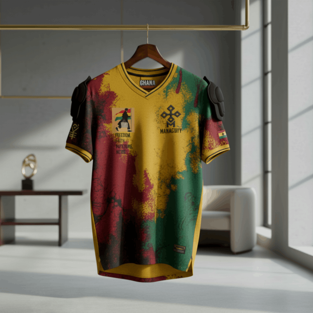 • Symbolic Motifs: Features high-density prints including the “Gye Nyame” inspired emblem and “Freedom. Faith. Future.” typography for a powerful cultural statement.